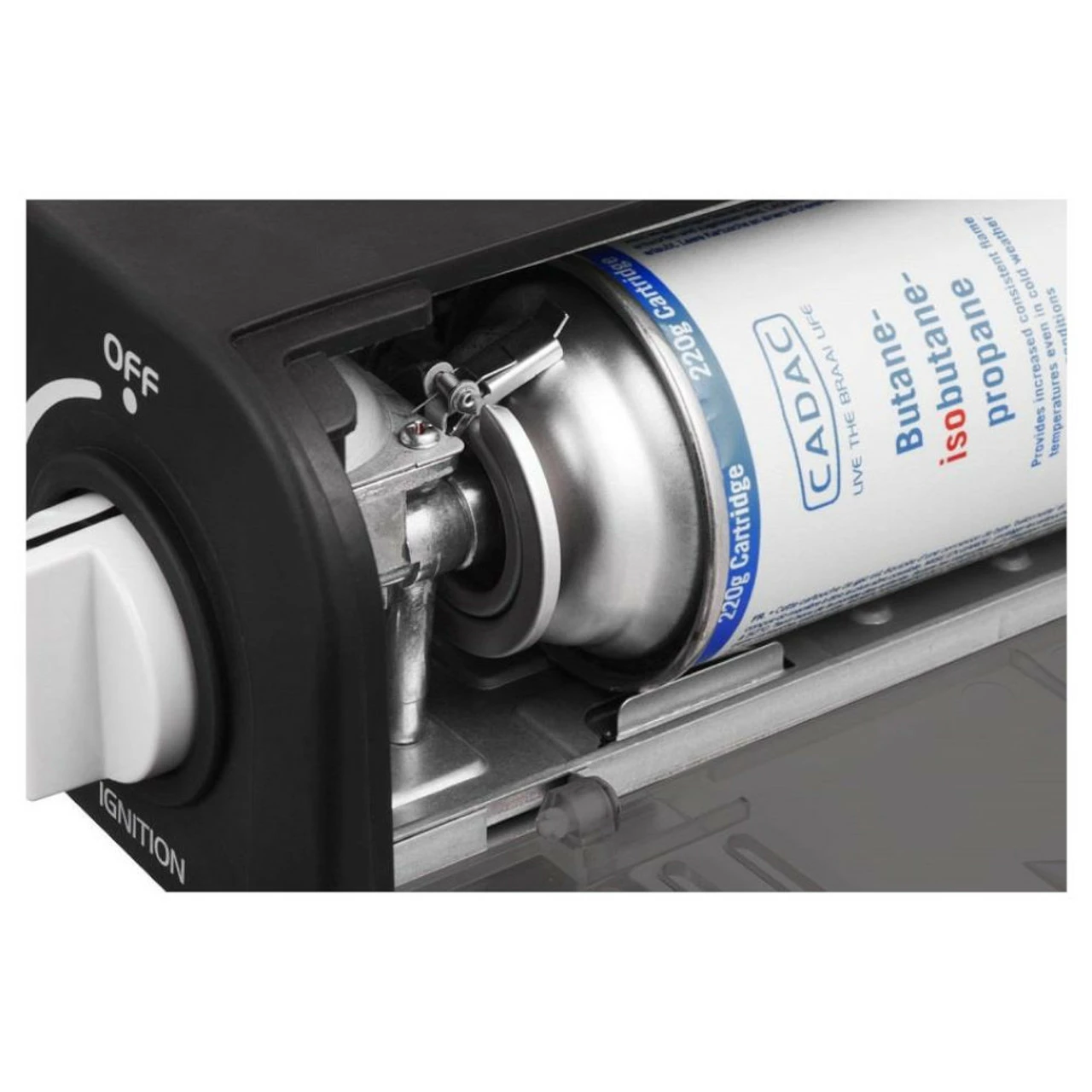 Taking a complete, portable gas BBQ on your next picnic trip or camping holiday is possible thanks to this Cadac Safari Chef 30 Compact. Operating from lightweight and readily available 227g cartridges, with an easy locking system for added safety, the cartridge size enables this BBQ to be compact making carrying easy.
