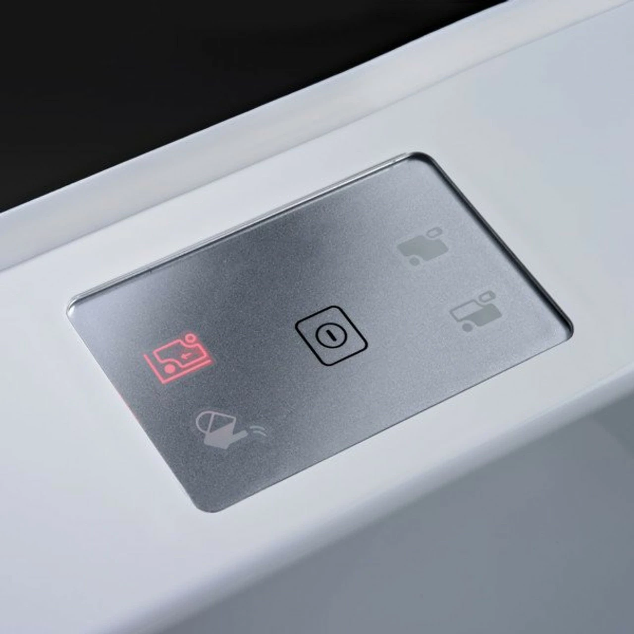 The Saneo’s body is manufactured from a high-quality plastic however the bowl is lined with ceramic to give it a touch of quality and class. Fitted with convenient features such as a dual close valve ensuring extra safety when the cassette tank has been removed, coupled with a user-friendly touch sensitive display with the built-in impulse flush allowing you to control how much water is used in each flush.