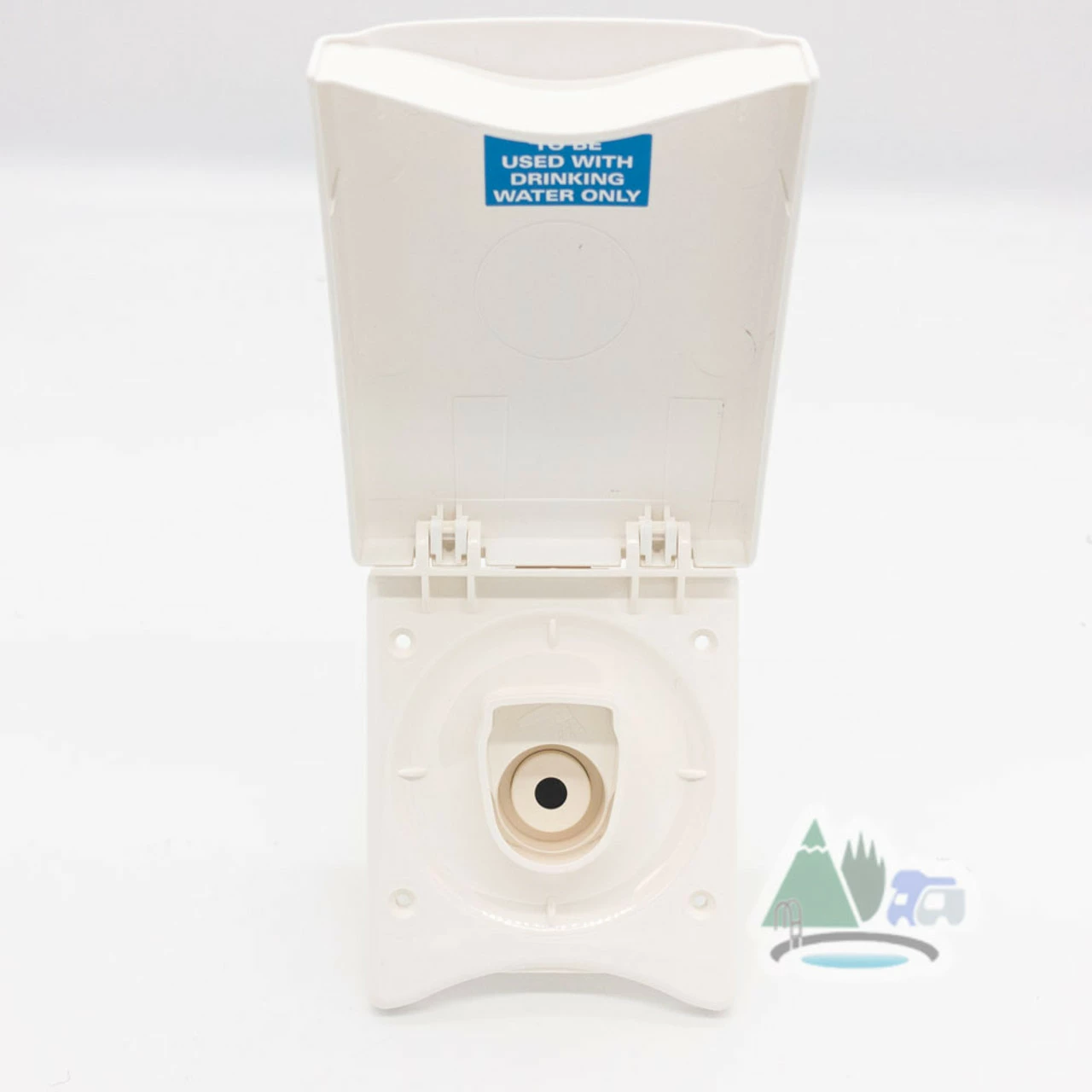 Truma Ultraflow water inlet housing, in white.