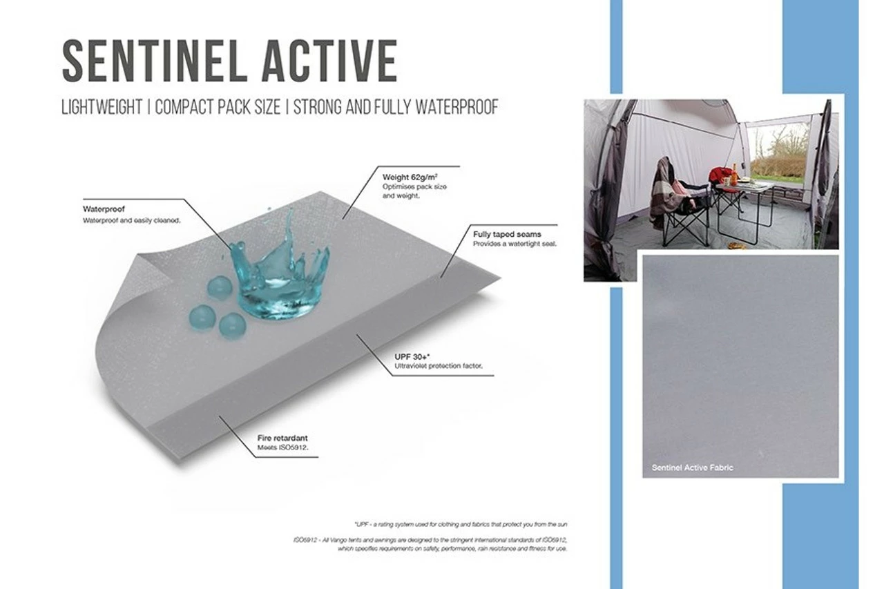 - Vango’s Sentinel Active fabric is lightweight yet strong and fully waterproof