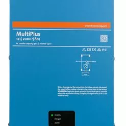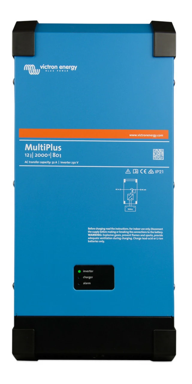 In addition to providing 230V power, the Victron Multiplus 12/2000/80 also handles the charging task for the dual 110Ah AGM batteries included in the kit, keeping them topped up ready to use.
